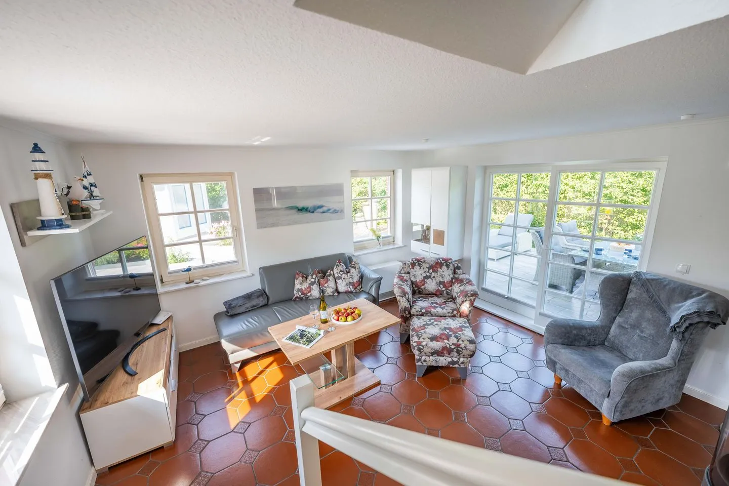 In der Sommersaison bringt Sie die Fähre von der Seebrücke in Dranske bequem auf die autofreie Insel Hiddensee – ein Ausflug, der lange in Erinnerung bleibt. Die weite Küstenlandschaft lädt zu Wanderungen und Radtouren ein; der Hochuferweg Richtung Kap Arkona gilt als eine der schönsten Küstenstrecken Rügens. Wassersportfans finden am nahen Wieker Bodden beste Bedingungen zum Kitesurfen oder Stand-up-Paddling. Trotz der idyllischen Abgeschiedenheit sind die Orte Dranske, Wiek und Altenkirchen nur einen Katzensprung entfernt – mit Einkaufsmöglichkeiten und Cafés, die die stille Lage alltagstauglich machen.