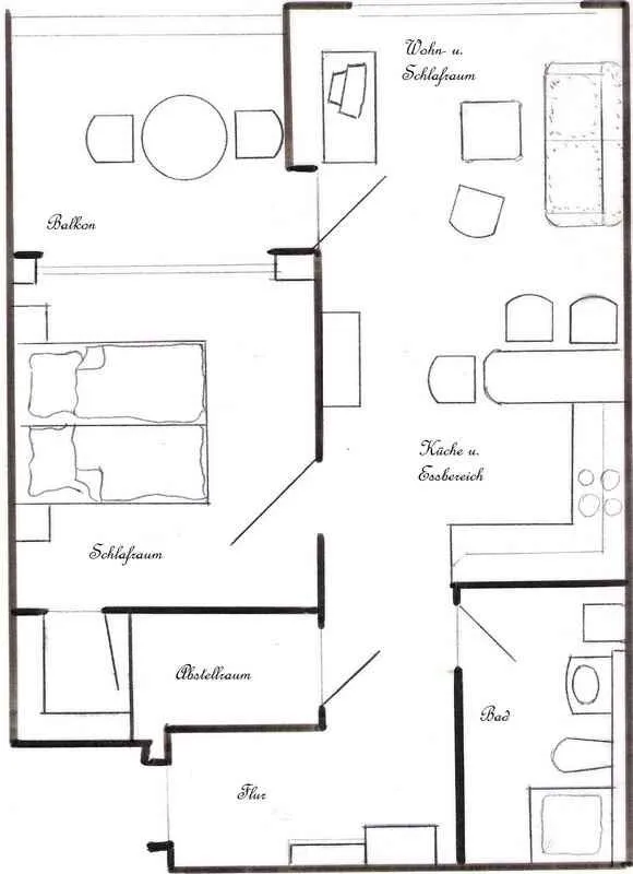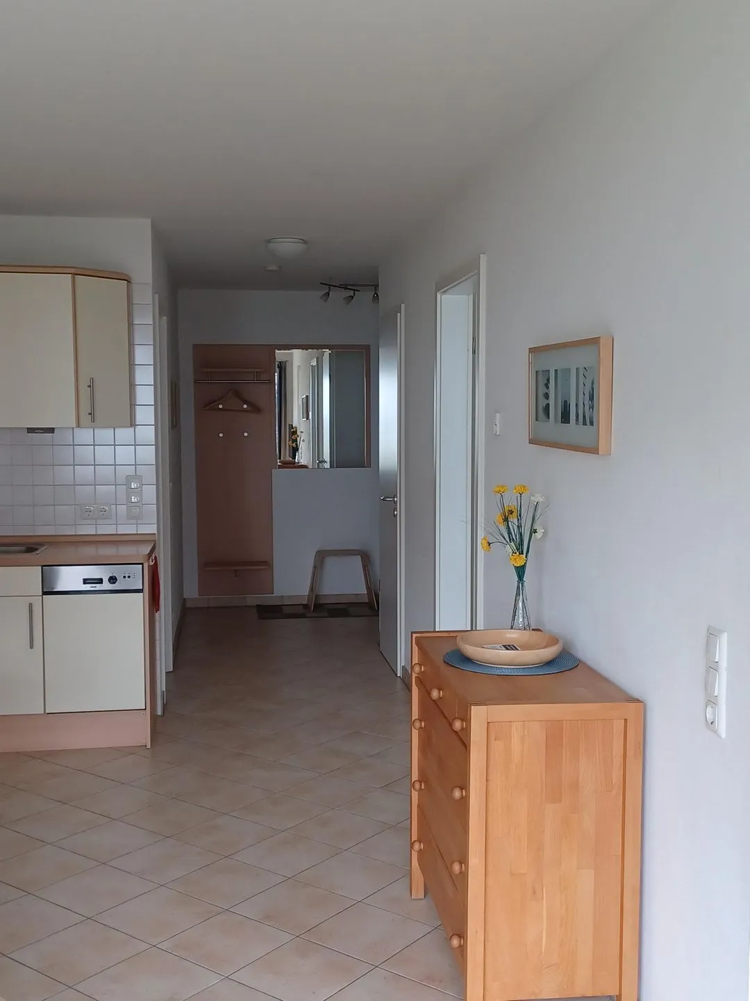 Das Appartement ist modern und komfortabel eingerichtet. Es verfügt über ein separates Schlafzimmer mit Doppelbett sowie einen offenen Wohn- und Essbereich mit Küche – bestens ausgestattet für unbeschwerte Urlaubstage. Aufzug und eigener Parkplatz am Haus sorgen für eine entspannten Aufenthalt.
